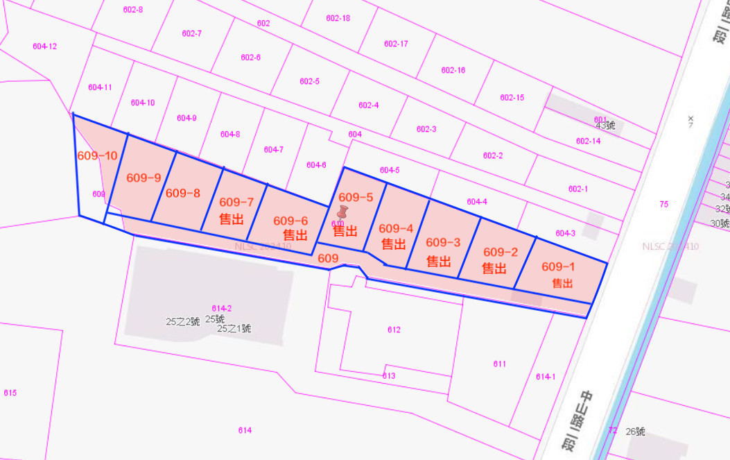 ▲地號609-8,105.52坪+持分道路24坪,合計129.52坪,開價:347萬