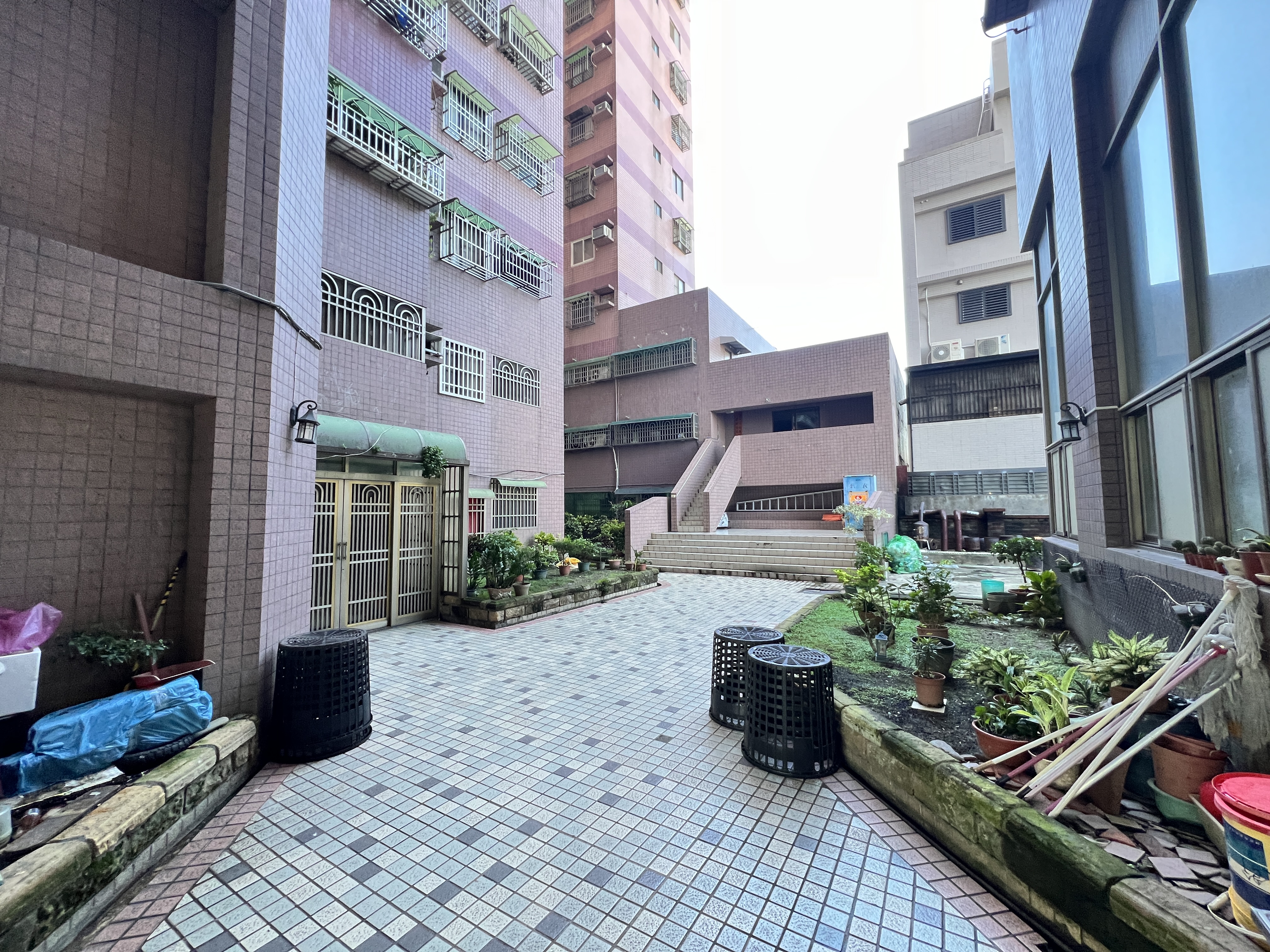 ▲附屬公設與設施:一樓24小時管理,中庭進出,一樓門口有垃圾集中處。