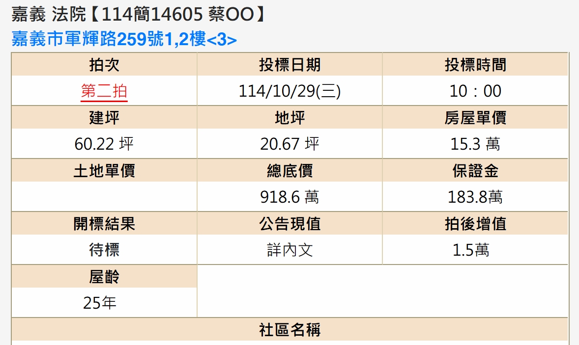 ❄法拍物件詳細資料和相關產權資料如有錯誤皆以主管機關拍賣公告為準