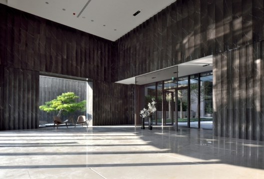 迎賓大廳| 以飯店式尺度打造門廳空間,大面玻璃採光與石材質感呈現尊榮氣勢。