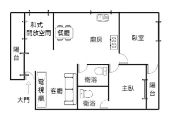 ▲空間坪效:客廳時尚裝潢、餐廳廚房動線優化,臥室適中居家舒適。