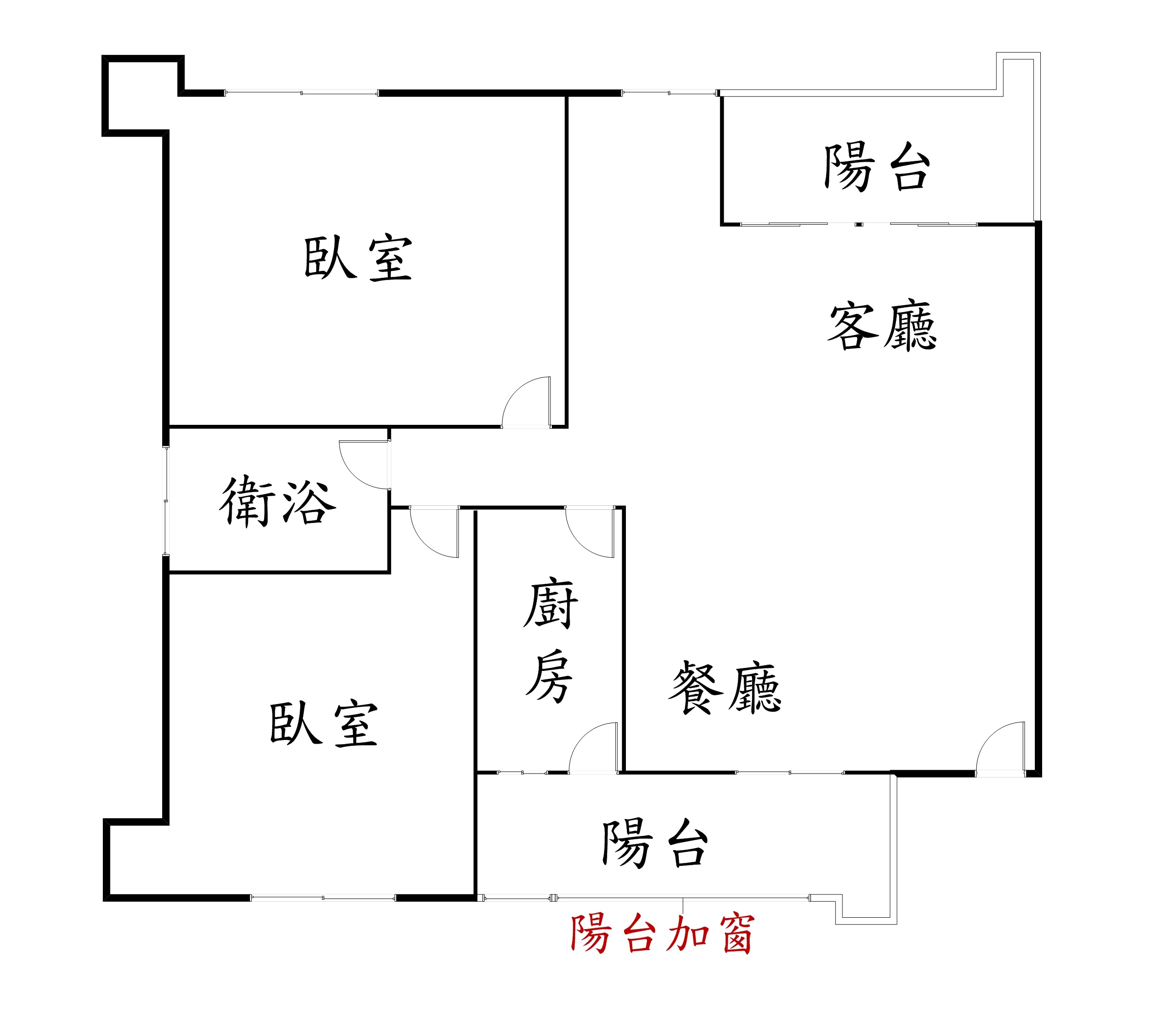 2房2廳1衛1廚房-2陽台