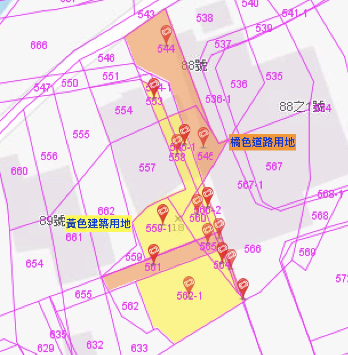 | ■土地現況(使用分區:第二種住宅區、特定特定第三種住宅區、道路用地、類別:建地+路地) | |||||||||||||||||||||||||||||||||||