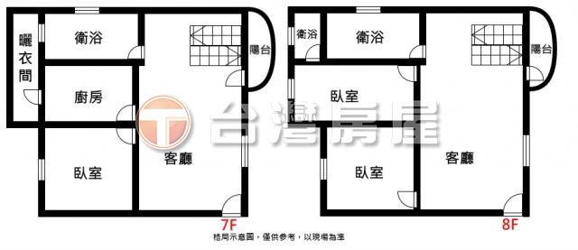 1.稀有樓中樓,7F、8F各有獨立進出門,增加居住的私密性和便利性。