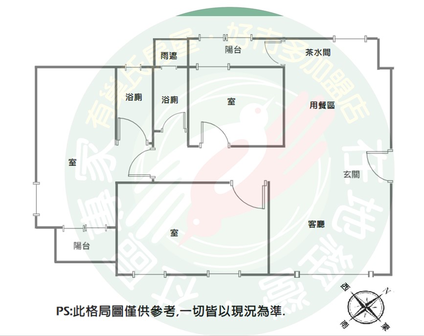 四改三室,純室內使用空間近38坪,超大空間,三面採光方正格局.