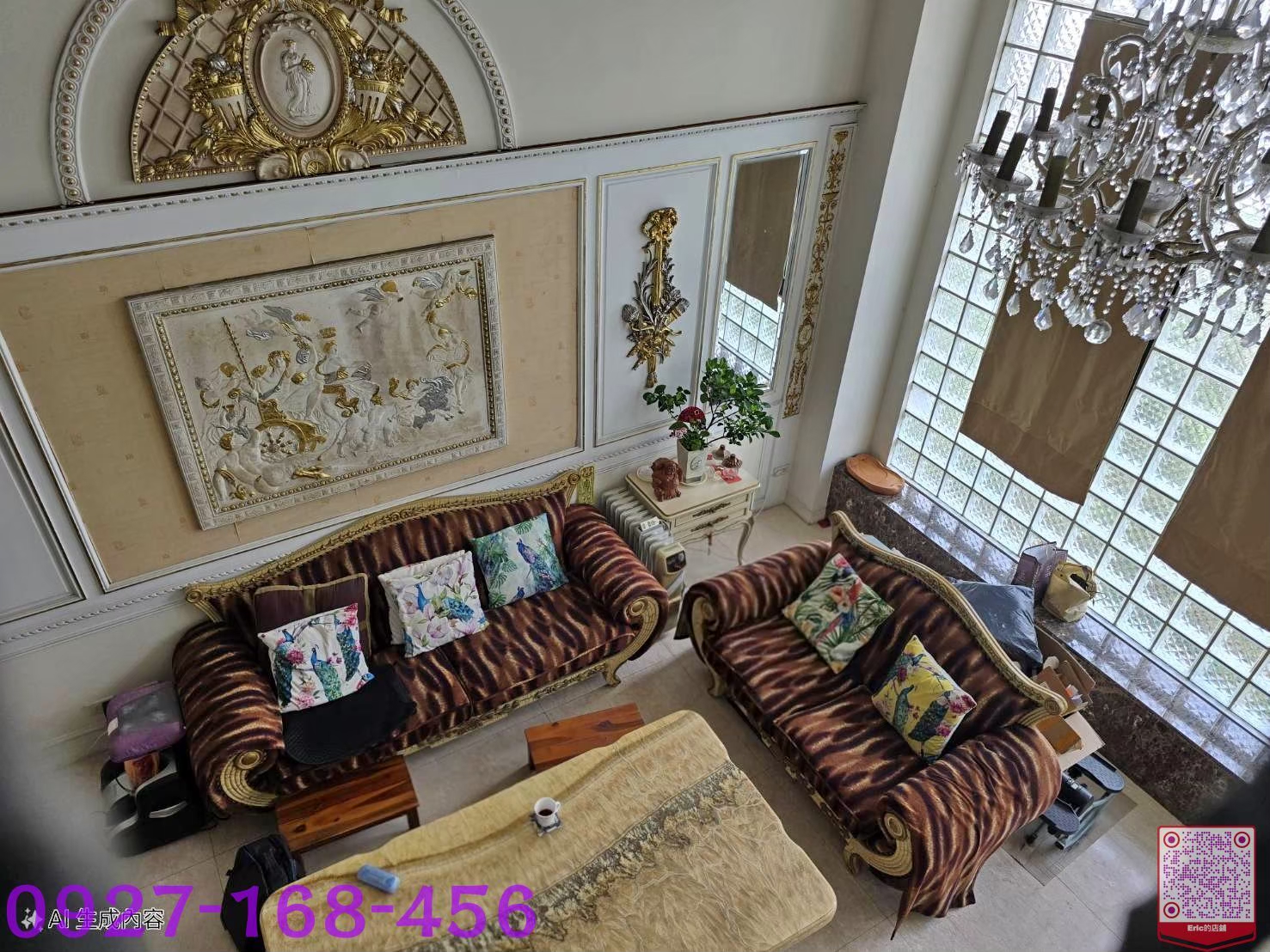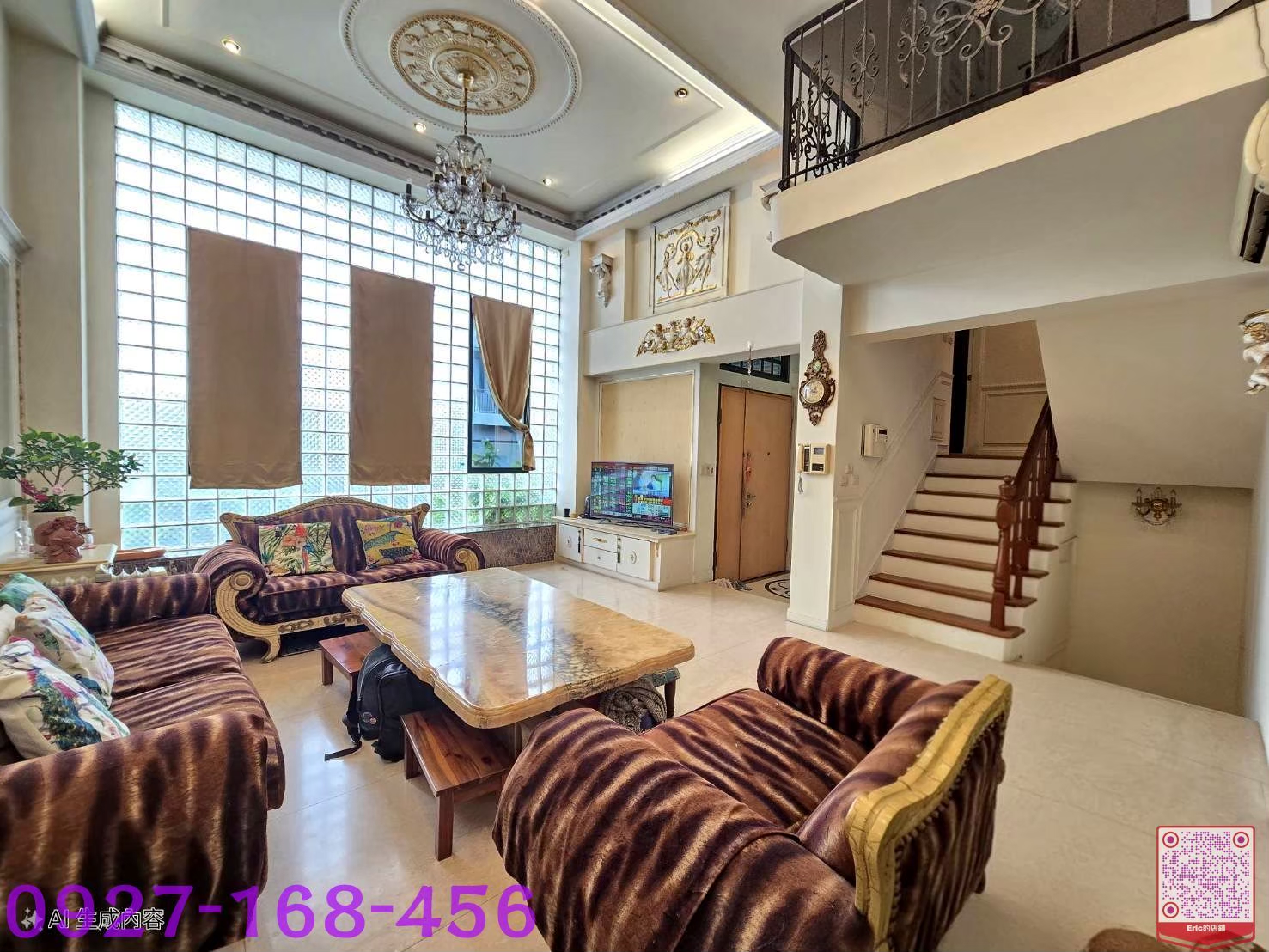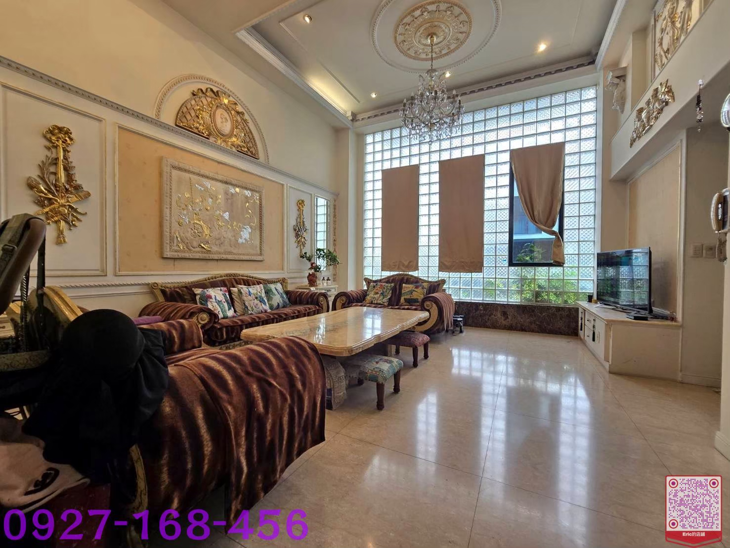 2️⃣客廳挑高設計,前後皆有花園,窗戶採用透明玻璃磚,自然光充足,採光與通風極佳