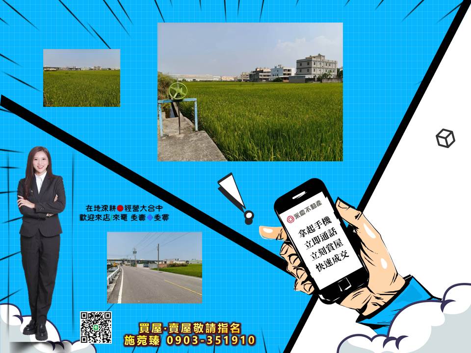 台中龍井㊣海尾路忠和段方正330坪農地