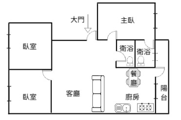 ▲空間坪效:室內格局方正,客廳寬敞,臥室面積適中,居家舒適溫馨。
