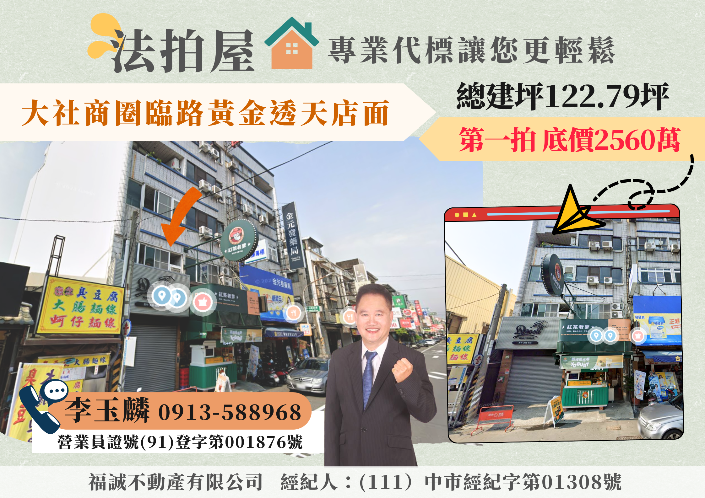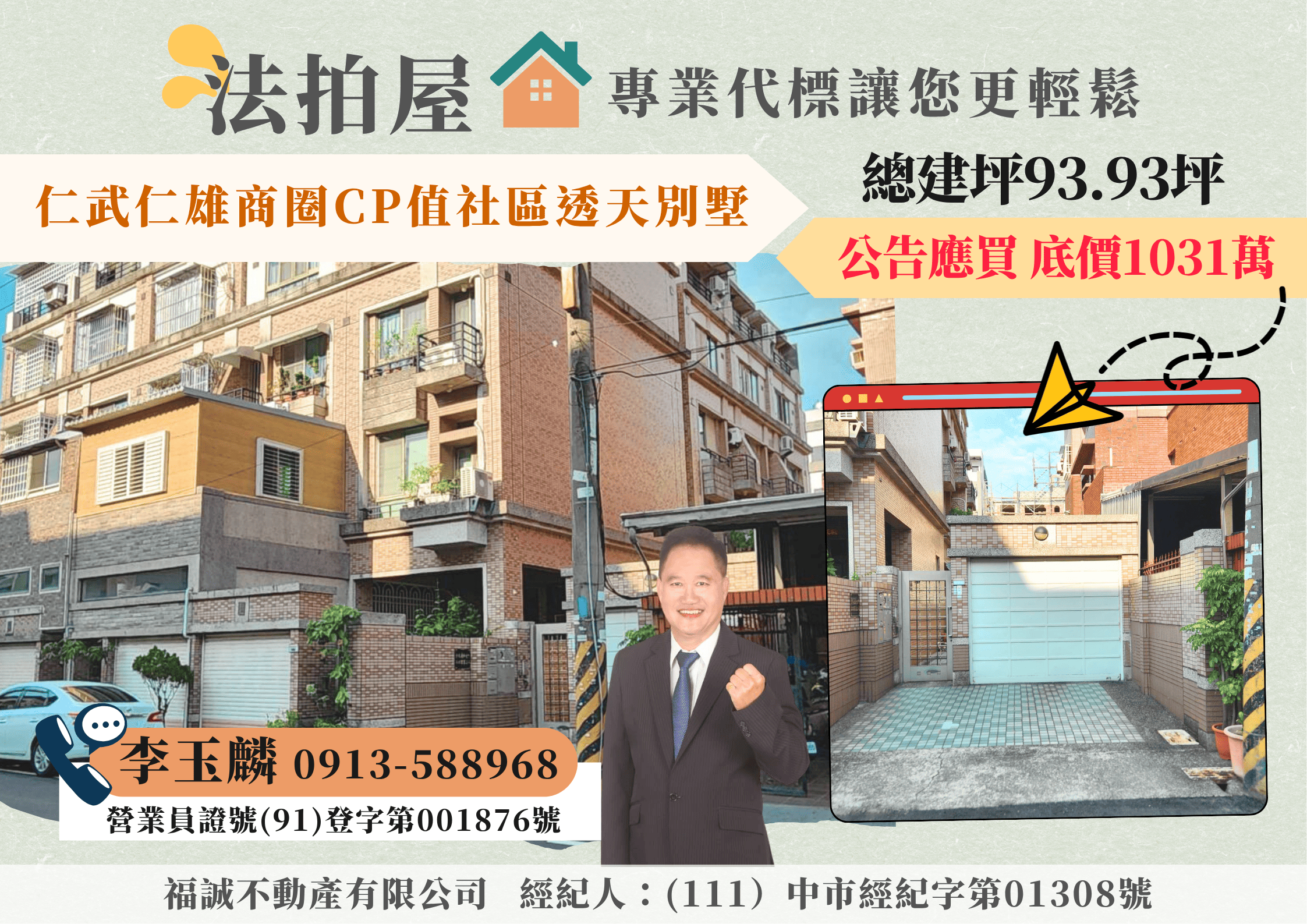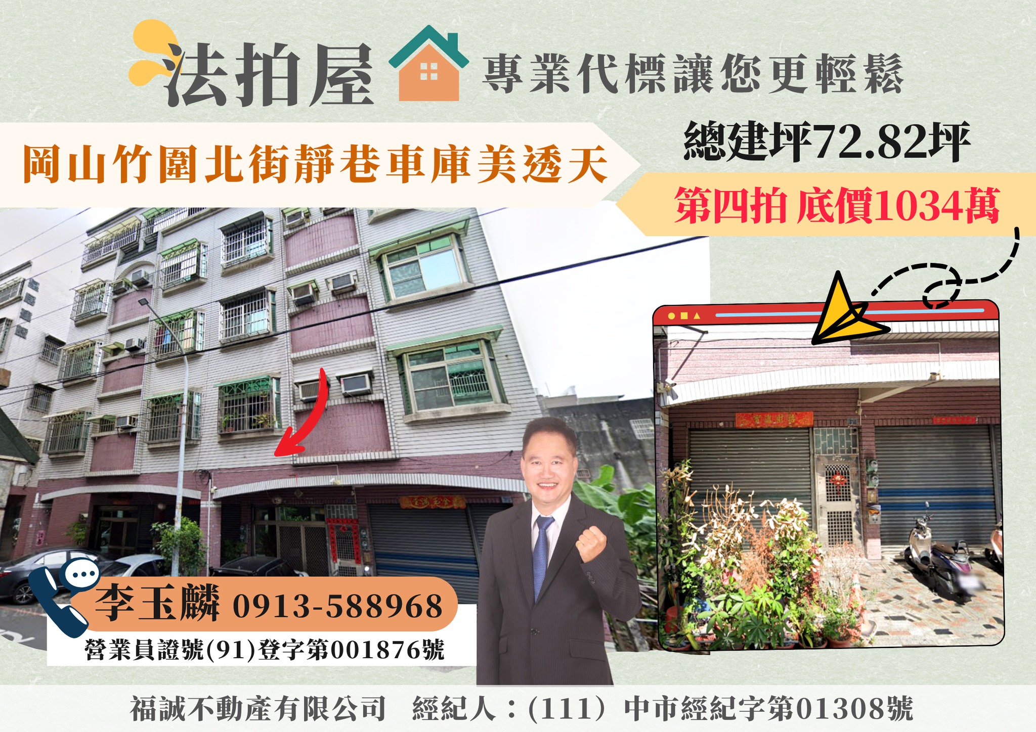 本人從事租屋、仲介、法拍已25年實戰經驗,經民國92年進入104法拍網,從事法拍屋標購、點交的工作至106年,106年繼續在福誠不動產服務大家,本人以不動產多年的經驗,秉持專業、務實、誠信的態度,從代標到點交,全程服務協助您《標的到又標的便宜》,並迅速取得交屋!! 讓《李玉麟 經理》來協助您!